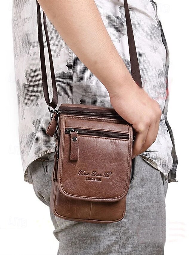 $29.99 - Vintage Brown Leather Crossbody Bag for Men – Compact Shoulder Bag with Zippered Compartments and Adjustable Strap for Everyday Use 2025. Shop for cheap Men's Bags online? Buy at lightinthebox.com on sale today!