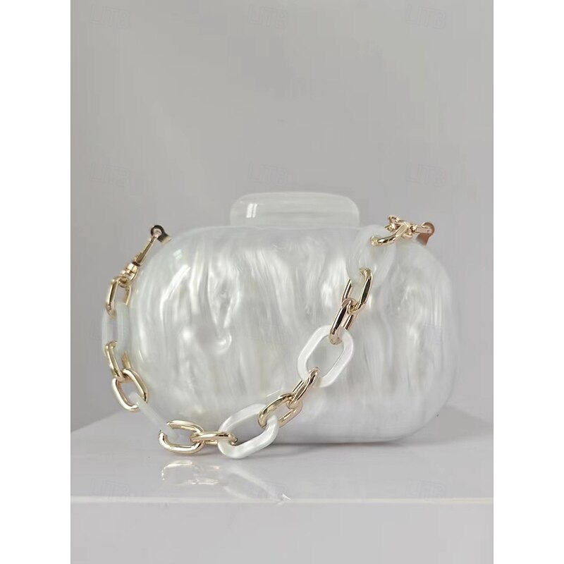 trending ! Women's Clutch Evening Bag Shoulder Bags Acrylic Party Wedding Party Chain Multi Carry Solid Color Almond Black White