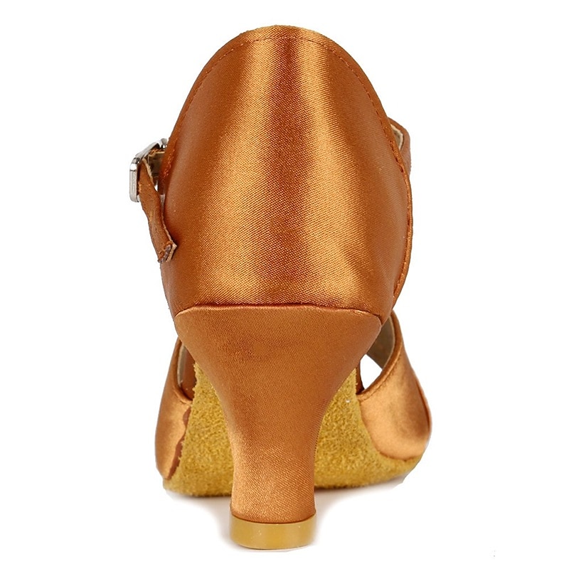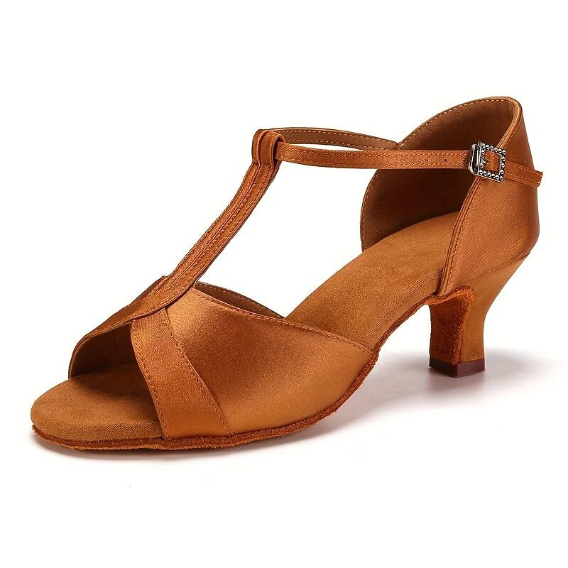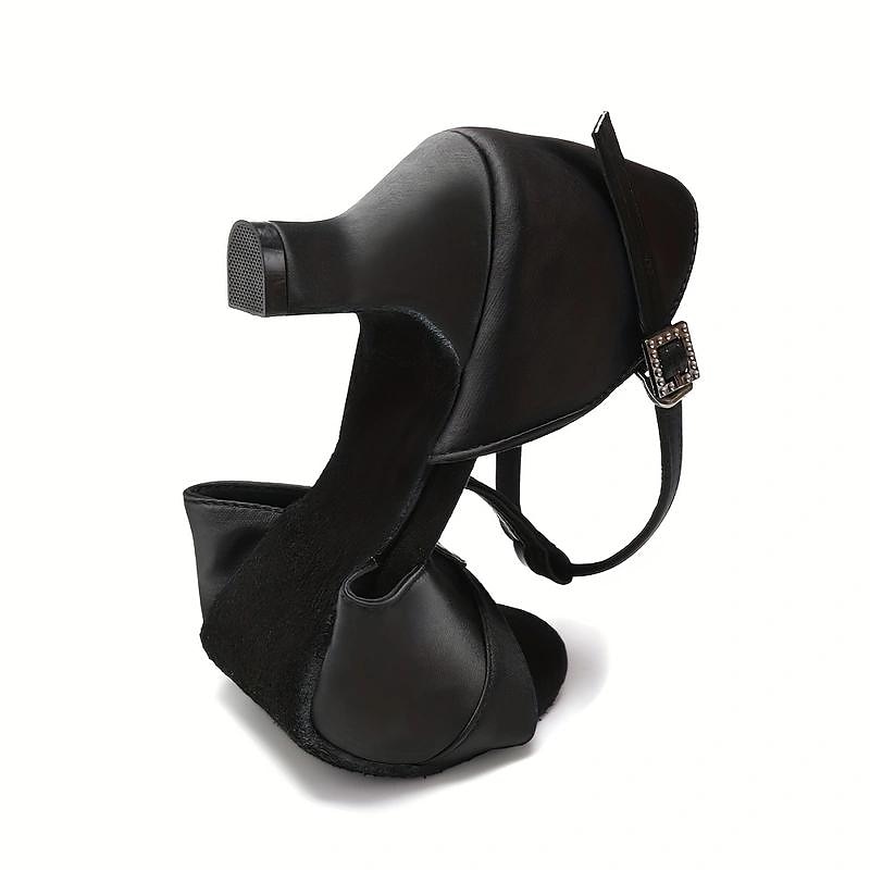 Highlights [Fabric] : Crafted with premium suede for a luxurious feel, these shoes offer a soft and comfortable fit that's perfect for long hours of wear. The flannel lining enhances comfort, while the leather outsole provides durability and adds a touch of sophistication. [Silhouette] : With a sleek and polished silhouette, these high-heel shoes feature a classic T-strap design for a secure yet sleek fit. The open peep-toe design complements the elegant profile, ensuring both current aesthetics and comfort. [Design Highlights] : The shoes boast a chic solid color that makes a versatile addition to any wardrobe. The secure zipper closure ensures easy wearability and a snug fit, while the actual 3.15-inch heel provides the perfect balance of height and comfort for both dancing and formal events. [Occasions] : Ideal for Latin dance events such as rumba, as well as professional gatherings and prom nights, these shoes add a touch of elegance and flair to any formal occasion. Whether you're hitting the dance floor or attending a stylish event, they offer the perfect blend of function and fashion. [Size Advice] : Available in a range of sizes from US6 to US9.5-10, these shoes are designed to fit a variety of foot types. It is advisable for individuals with wider feet to consider sizing up to ensure a comfortable fit.