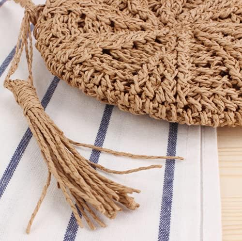 Fabric type: StrawOrigin: ImportedClosure type: FlapSolid color, woven pattern, tassles and hollow out decoration look so fashionable and chic. It is also very easy to match clothes. Multifunctional use, can be used as cross-body bag, single shoulder bag, boho bag, handbag as your pleasure.Size:Bag Diameter:20cm/7.87inch.Strap Total Length:120cm/47.24inch.Light weight and comfortable.Long shoulder strap with tassel decoration.Fashion design makes you look unique and fashion; Its dainty and unique design are sure to bring lots of attention.Round design with tassel matches Straw Cross Body Bag well, making you look more stylish. Weight: 3.9oz/110g, Very light quality, no pressure, comfortable and natural.It is very suitable for dating, shopping, work, travel, career, party and other occasions, and keep your daily necessities in order. Perfect for everyday use. premium materials and excellent craftsmanship ensure long-lasting durability.