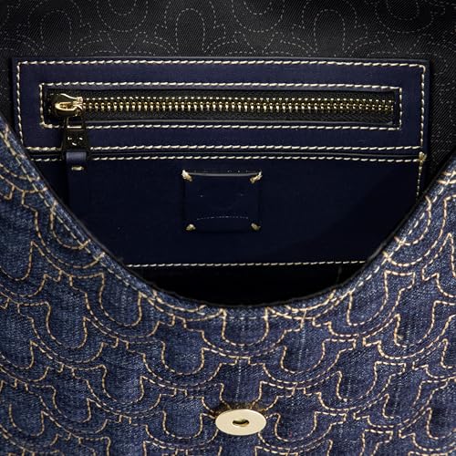 More information about True Religion Quilted Denim Hobo Hand Bag, Large Horseshoe Stitch Shoulder Purse with Gold Hardware, Dark Denim