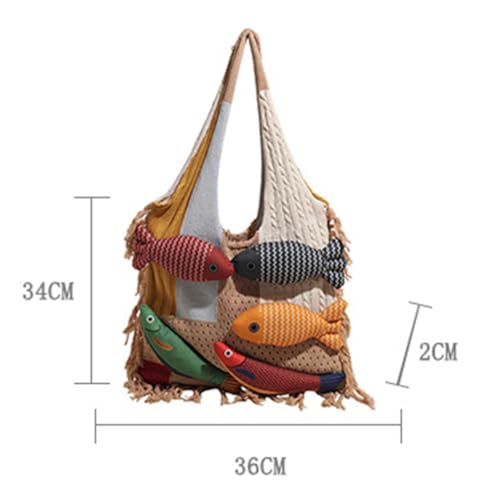 Fish Decoration Tote Bag for Women Knitted Shoulder Bag for Women Underarm Purse Hobo Handbag Travel Tote Satchels 2025