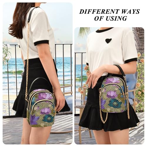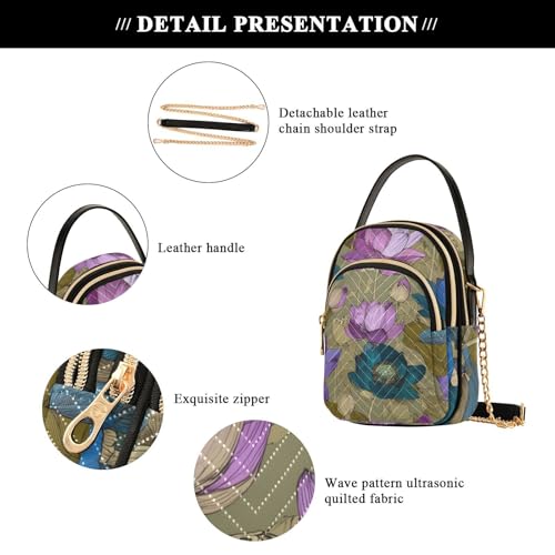susiyo Blue Purple Lotus Flowers Pattern Crossbody Purse for Women, Quilted Crossbody Bag Ladies Casual Bags Shoulder Bag Phone Purse Handbag Wallet