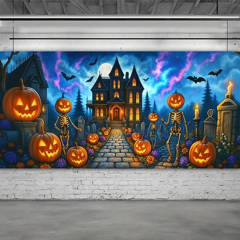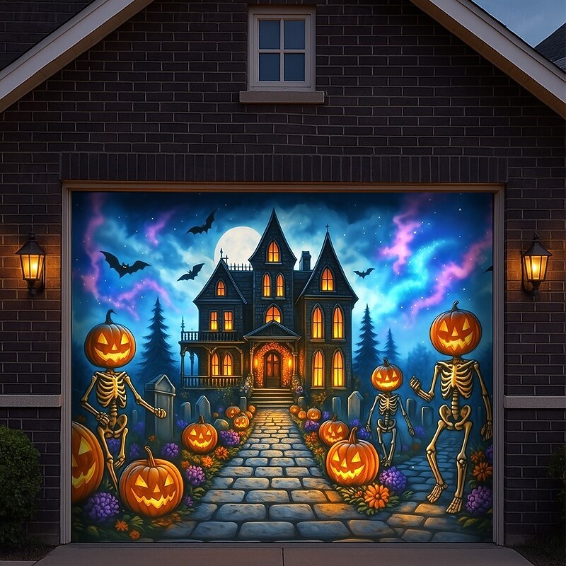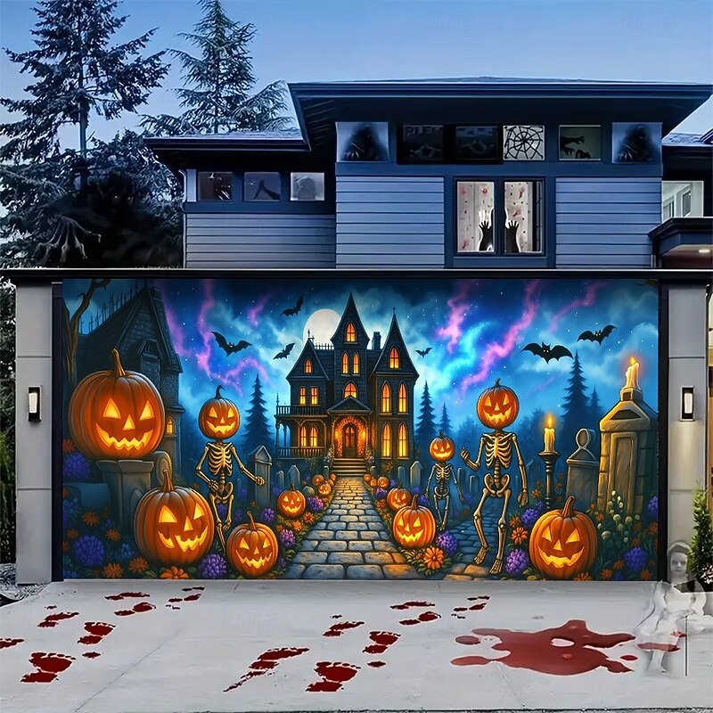 $32.99 - Halloween Garage Door Cover Pumpkin Head with Scythe Banner, Large Tapestry Backdrop Decoration for Holiday Outdoor Garage Door and Home Wall, 2025 Halloween Decorations 2025. Shop for cheap Halloween Garage Door Cover online? Buy at lightinthebox.com on sale today!