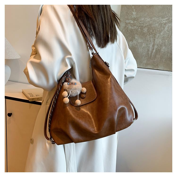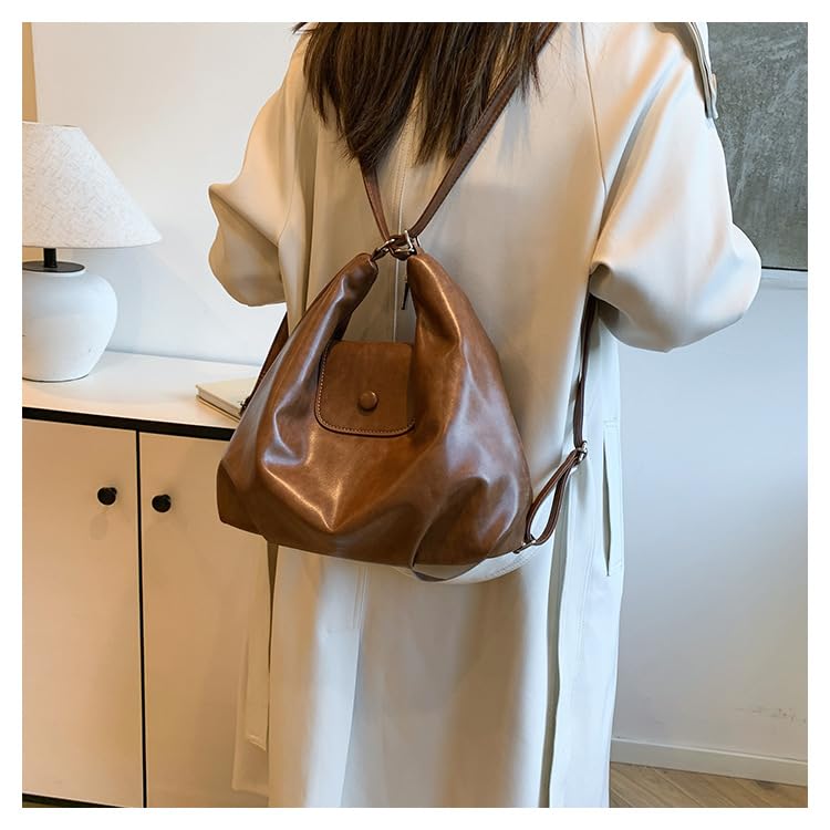 trending ! Retro Pu Leather Tote Crossbody Bag, vintage Vintage basic Shoulder Handbag, Large Capacity Versatile Shoulder Double Bag