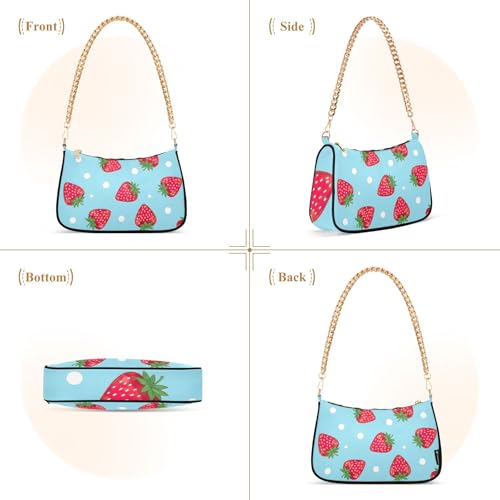 More information about Red Strawberries Blue Lady One Shoulder Bag for Women Evening Bags Purse Chain Strap Zipper Cute Purses