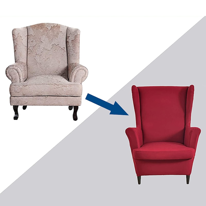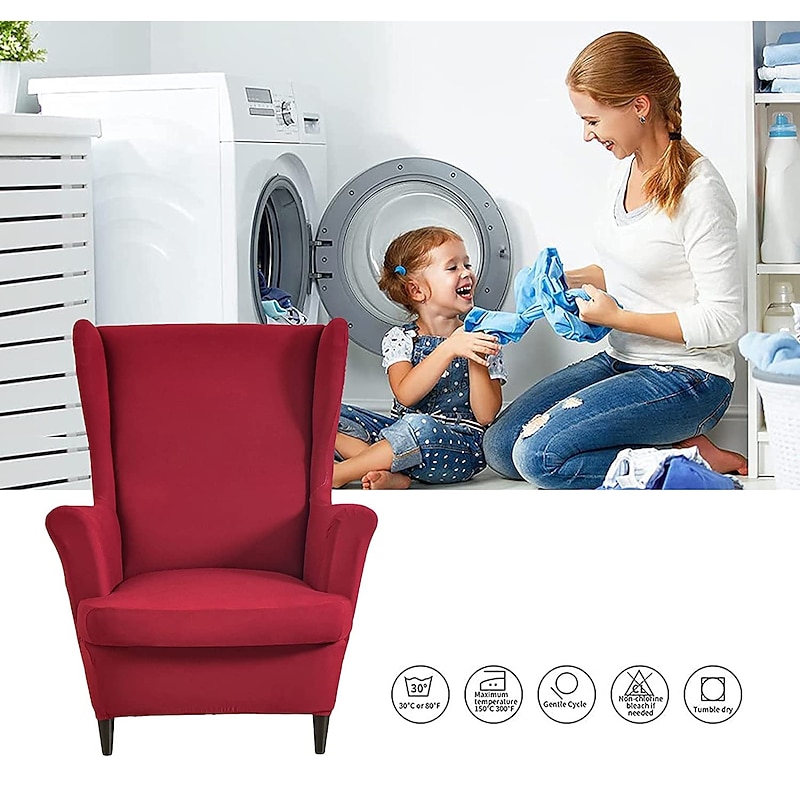 More information about Solid Color Stretch Wingback Chair Cover Wing Chair Slipcovers Spandex Fabric Burgundy Red Wingback Armchair Covers with Elastic Bottom for Living Room Bedroom Decor