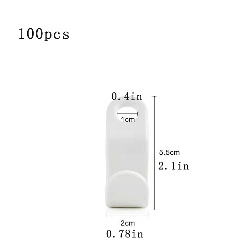 Highlights - Package includes 100 hanger hooks, perfect for daily use in your home or clothing shop. - Made of high-quality ABS plastic, the connector hooks are resilient and safe to use. - Smooth edges prevent scratches on your skin and clothes. - tough load-bearing capacity allows for vertical arrangement of clothes, maximizing storage space in your wardrobe. - Compact and portable design takes up minimal space when not in use. - Suitable for most standard hangers with a hole diameter of 1.1cm. - Versatile usage - can be used for hanging clothes, bags, belts, accessories, jewelry, scarves, bow ties, etc. - Greatly saves closet space and meets your needs for storing a large amount of clothes.