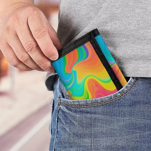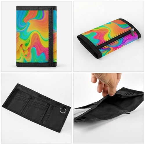 trending ! Rainbow Color Abstract Illustration Print Trifold Wallet with ID Window & Key Ring | Slim Front Pocket Wallet with 8 Card Holder