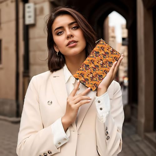 Wallet Women - Festival Sausage Dogs Print Leather Wallet Large Capacity Bifold Long Ladies Wallets With Zipper