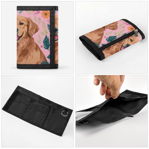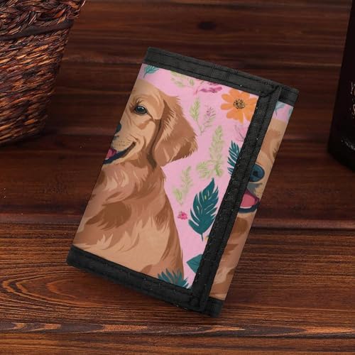 Fold Cute Golden Retriever Dog Pink Wallets for Travel Outdoor Accessories, Wallet with Front Pocket And Multiple Card Slots, Trifold Wallet for Women