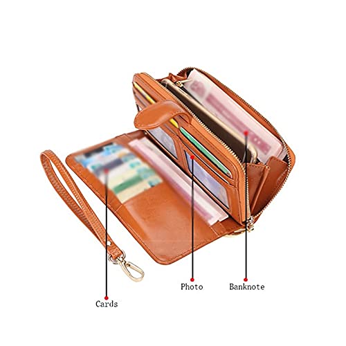More information about Womens wallet Ladies Wax Leather Wallet Large-capacity Buckle Zipper Long Wristband Clutch Change Card Holder(Brown)