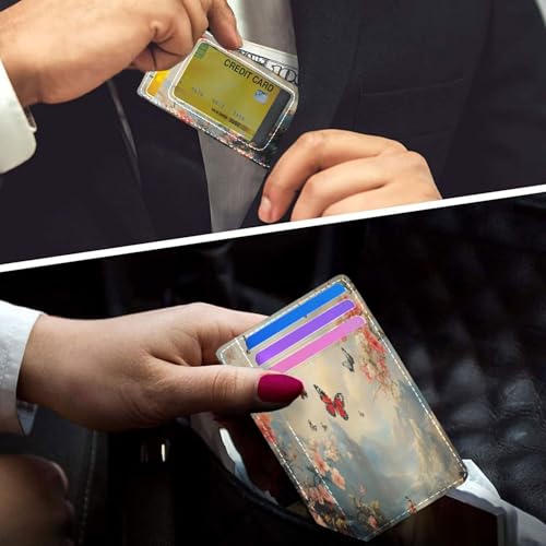 Spring Floral with Butterflies Card Holder Slim Front Pocket Wallet Minimalist RFID Blocking Credit Card Case for Women Men