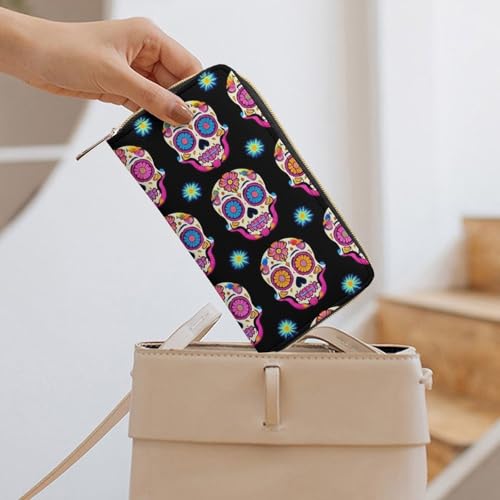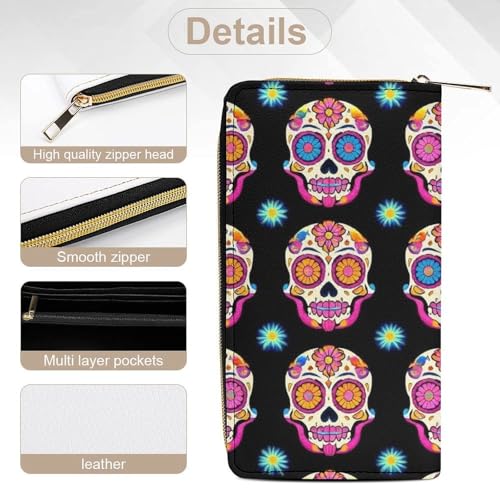 Why Choose Women's Cute Decor Wallet, Long PU Zipper Wallet, Travel Purse Fashion Design, Huge Storage Capacity Purse Day Dead Colorful Sugar Skull?