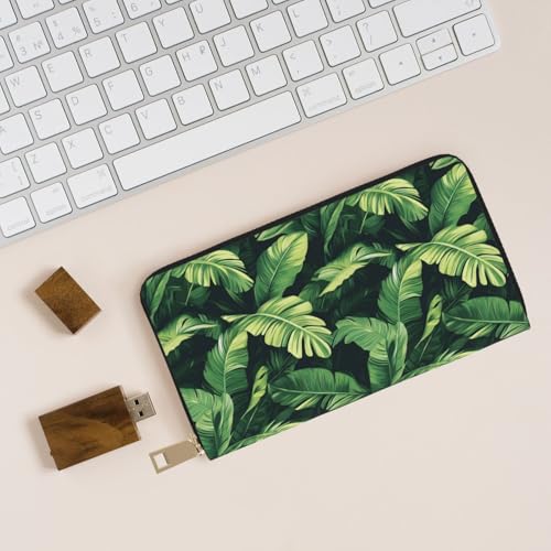 trending ! Tropical Green Plants Print Wallet Women Men, Long PU Leather Wallets for Women, Cute Womens Travel Wallet Purse Pouch with Zipper Pocket