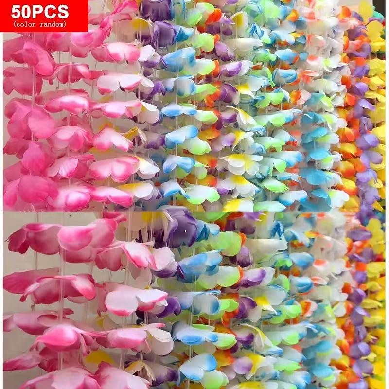 trending ! 50PCS Hawaiian Flower Lei Necklaces, Tropical Hawaiian Garlands for Festivals, Weddings, Beach Parties, Birthdays, Performances, and Oktoberfest Decorations