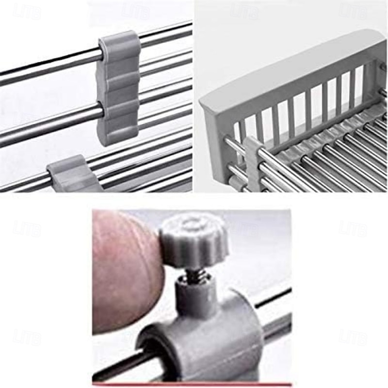 Highlights Product Selling Points: - Multifunctional use: This sink drain rack is designed with grooves to efficiently drain dishes and rinse vegetables and fruit. It can hold multiple cups and dishes simultaneously. Additionally, it can be used to conveniently drain water after cleaning vegetables and fruits. - Space-saving design: The rack has adjustable bars that can fit over the sink, on the countertop, or in the sink itself. This compact design takes up only a fraction of the space. Non-slip extendable rubber arms prevent the rack from falling into the sink, while rubber-coated feet protect your sink and counter from scratching. - Rustproof construction: Made from food-grade stainless steel, this dish drying rack is resistant to rust, corrosion, and damage caused by acids and alkalis. Its solid construction ensures long-lasting use. - High-quality stainless steel: The dish drying rack is made with top-grade metal, making it lighter, stronger, and more rust-resistant than other materials commonly used for similar products. - Important notes: Before purchasing, please check the size of both the dish rack and your kitchen sink to ensure compatibility. In case of any damages to the parcel, please photograph it, reject the delivery, and contact us for a resolution. Please note that size measurements may have a slight margin of error (1-3CM) due to manual craftsmanship. Additionally, please understand that there may be slight variations in color between the product photos and the actual item, due to light irradiation and differences in computer displays. Perfect for everyday use. first-class materials and excellent craftsmanship ensure long-lasting durability.