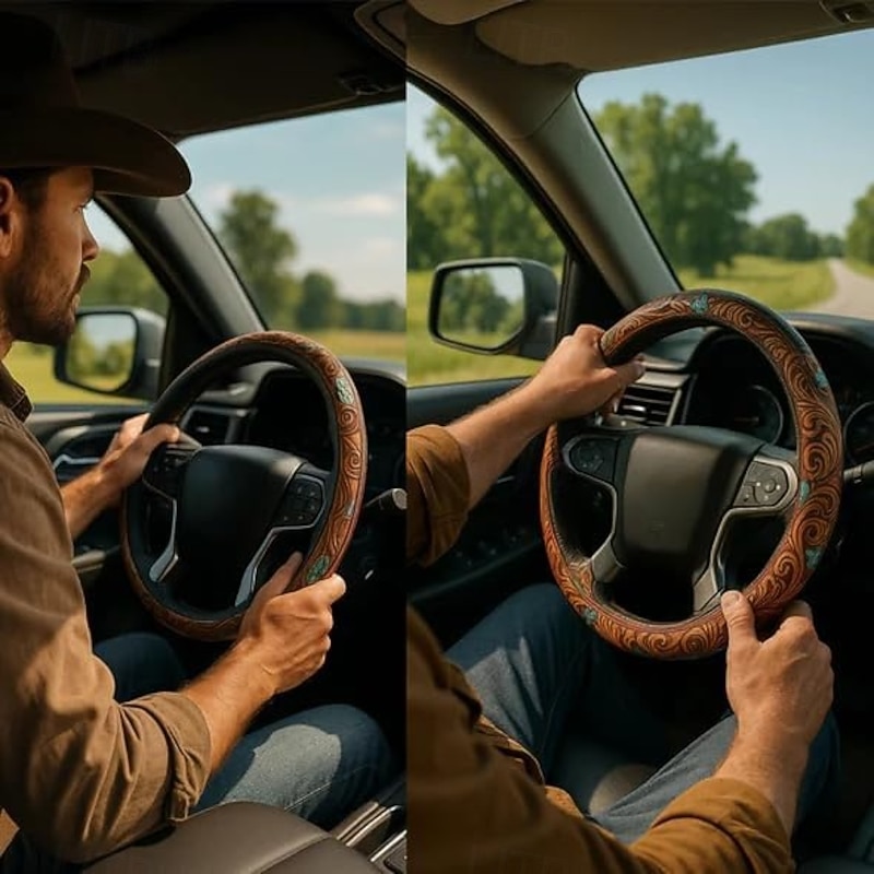 $25.99 - Western Steering Wheel Cover Leather Retro Cowboy Car & Truck Accessory, Universal 15 Inch Anti-Slip Wheel Cover for SUV, Pickup, Comfortable Grip, Easy to Install 2025. Shop for cheap Vehicle Service online? Buy at lightinthebox.com on sale today!