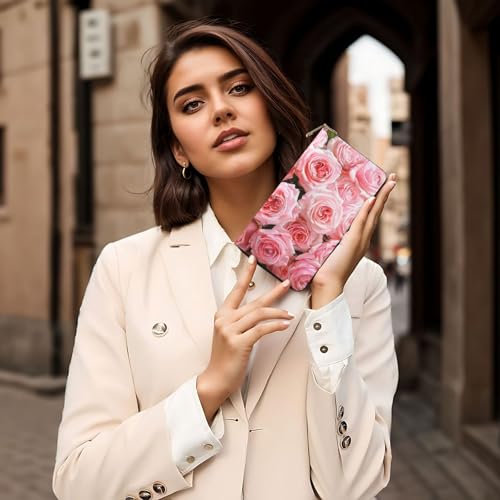 Fresh Roses Printed Long Wallet for Women Men Cute Coin Purse with Card Holder