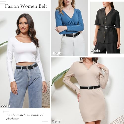 AWAYTR Rhinestone Buckle Belt for Women - PU Leather Plus Size Belts for Jeans and Dress