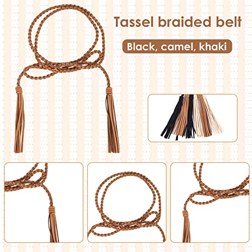 • 3Pieces Woven Belt: There are 3 tassel thin belts in total, 3 colors of black, brown, and khaki, suitable for tremendously women and girls, suitable for every season's clothing, such as dresses, long shirts, suits, loose pants, etc. It can make your clothes more dynamic and textured.