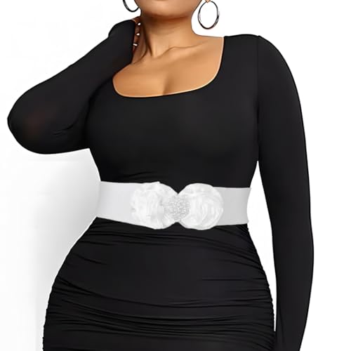 Wide Stretchy Belt White Women Pearl Flower Belt Black Fancy Elastic Formal Waist Belts for Dress