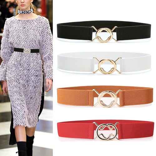 trending ! 4 packs of Women's Thin Elastic Belt Women's Alloy Buckle Elastic Women'sBelt DressBelt