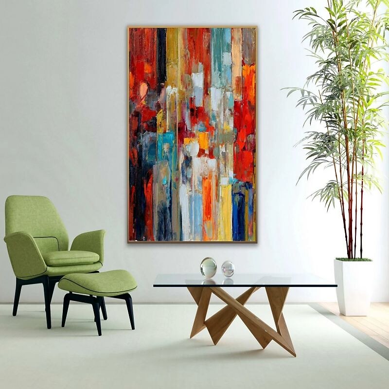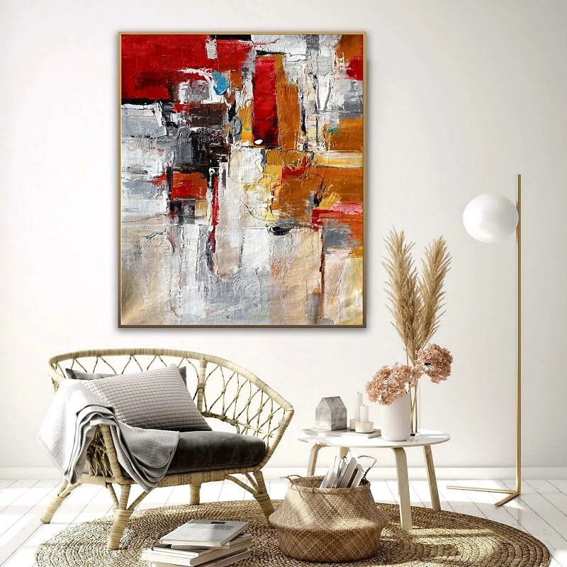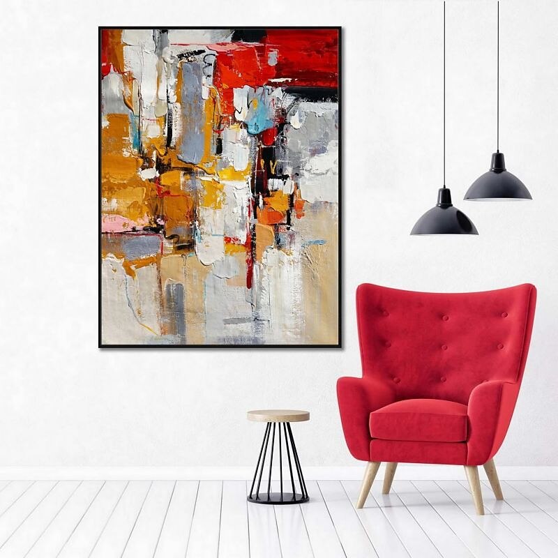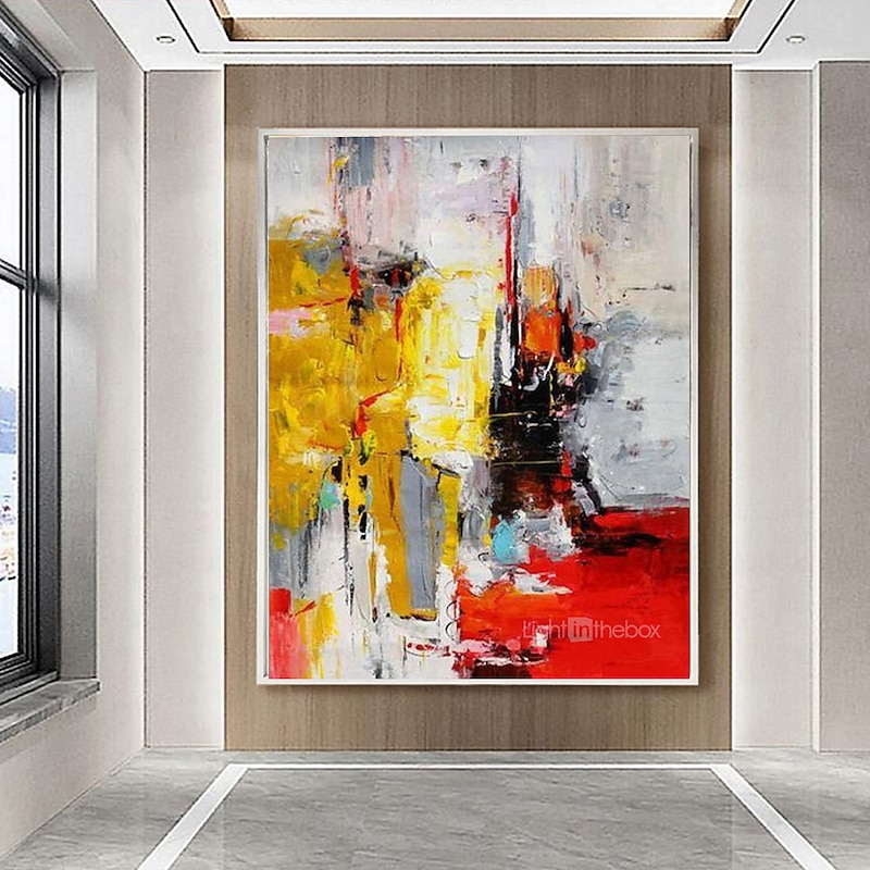 More information about Oil Painting 100% Handmade Hand Painted Wall Art On Canvas Abstract Knife Painting Landscape Yellow Red For Home Decoration Decor Rolled Canvas No Frame Unstretched