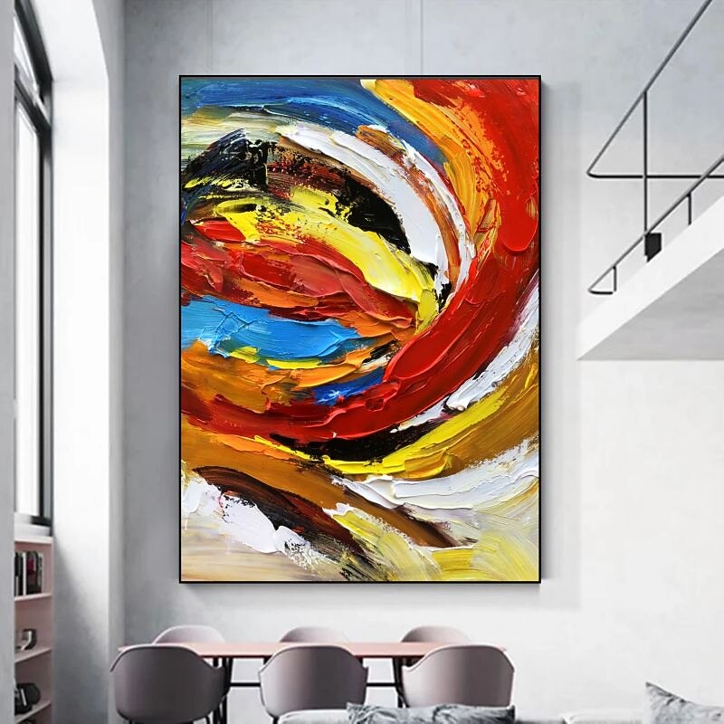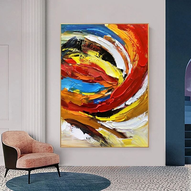 trending ! Oil Painting 100% Handmade Hand Painted Wall Art On Canvas Abstract Knife Painting Landscape Yellow Red For Home Decoration Decor Rolled Canvas No Frame Unstretched