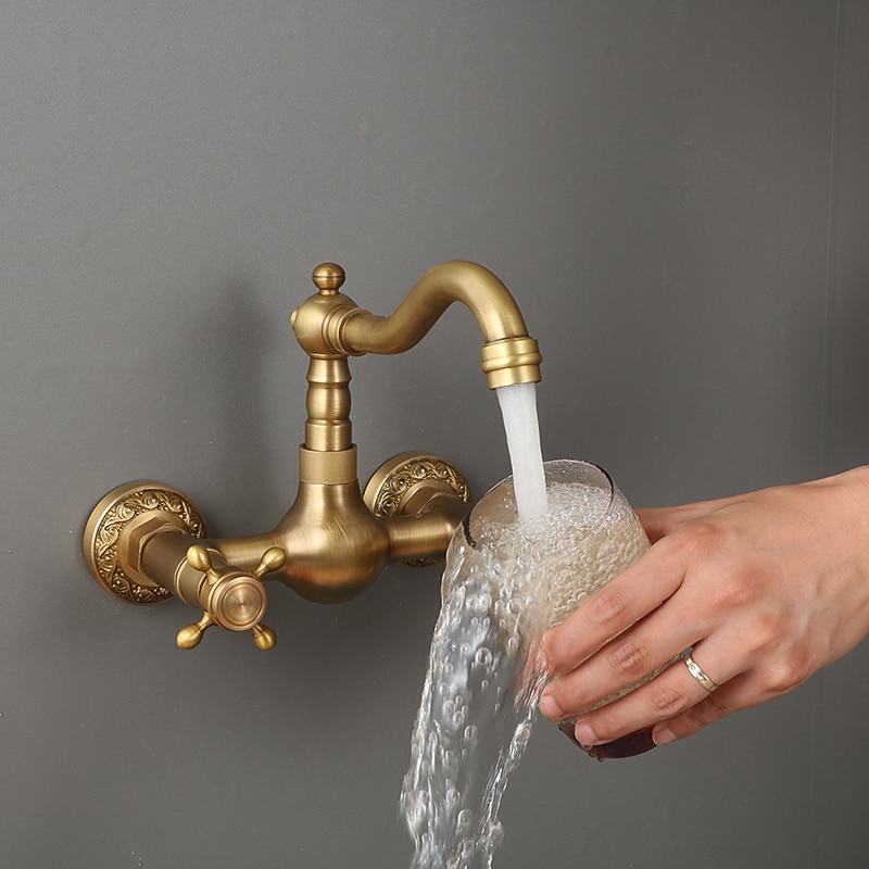Why Choose Traditional Kitchen Sink Mixer Taps Wall Mounted Brass, Vintage Retro Kitchen Faucet Twin Lever Standard Spout Vessel Tap?