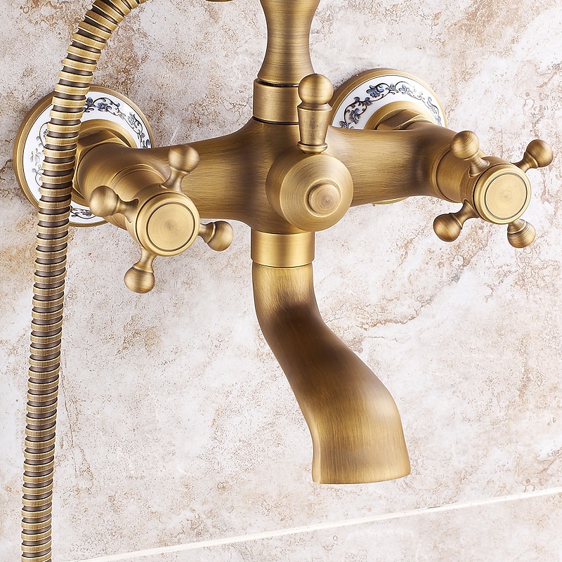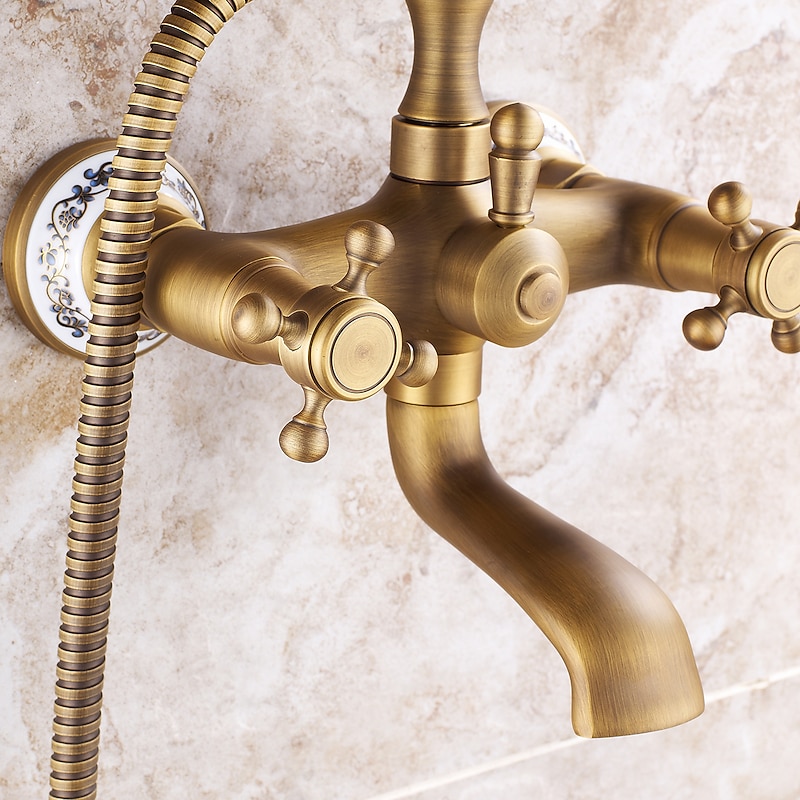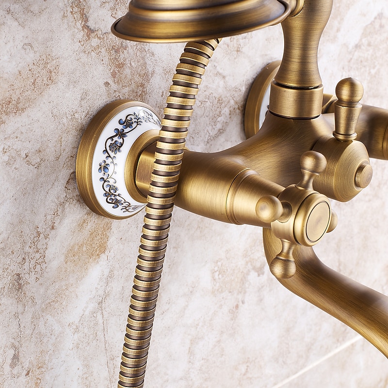 Why Choose Bathroom Sink Faucet,Brass Telephone Shape Wall Installation Widespread Pull-out Country Style Electroplated Copper Finish Two Handles Bathtub Faucet with Handshower and Drain?