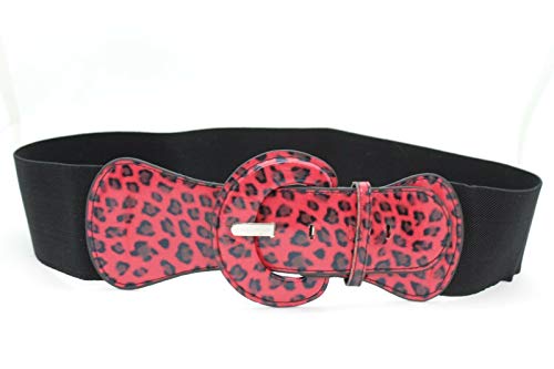 Women Hip Hop Fashion Elastic Belt Red Animal Print Leopard Cheetah M L