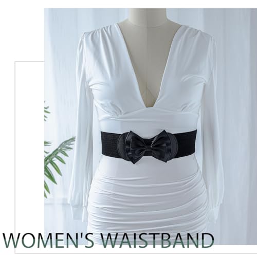 More information about CanB Bow Leather Belts Elastic Wide Waist Belt Stretch Plus Size Belts Women's Waistband for Dress Waist Jewelry