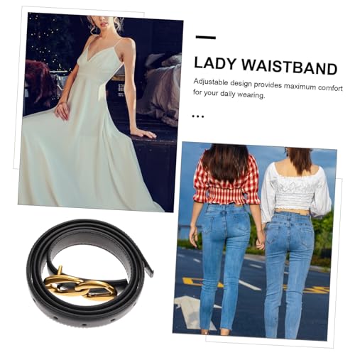 Women Adjustable Leather Belt for Vintage Style Waist Belt for Jeans and Dresses Fashionable Black Cowhide for Moms and Friends