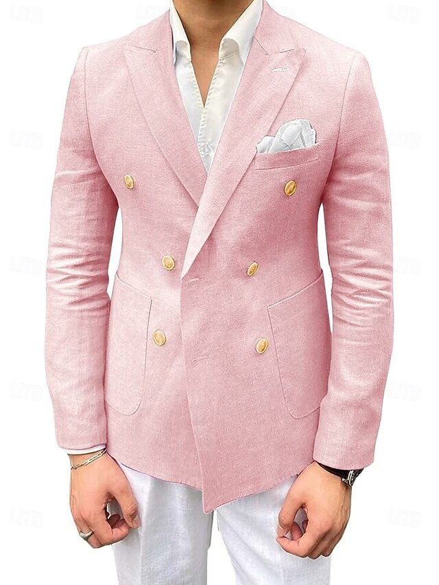 trending ! Men's Linen Blazer Sport Coat Closure collar Fashion Casual Solid Colored Black Pink khaki Tailored Fit Double Breasted Six-buttons