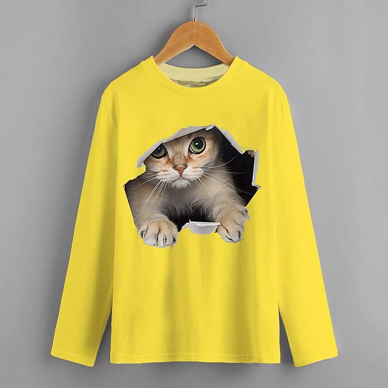 Why Choose Boys Girls' 3D Animal Cat T shirt Tee Long Sleeve 3D Print Fall Active Kids 4-12 Years Daily Wear Regular Fit?