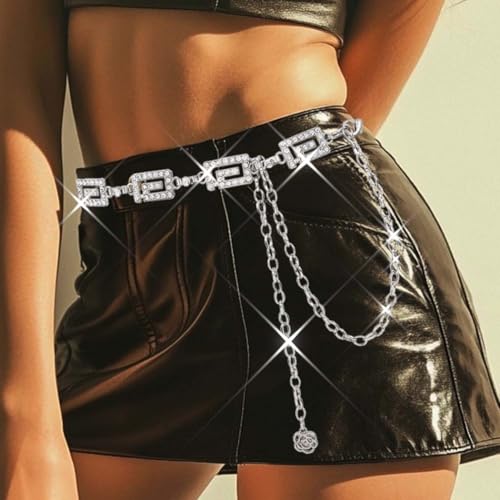 - Rhinestone waist chain belts are made of glass and alloy. Shiny chain belt is pretty and cozy to wear.