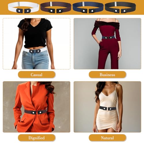 • 【Package Included】A set of buckleless belts in four colors. Each jean tightener for the waist can be paired with different clothing, such as jeans, dresses, skirts, etc.