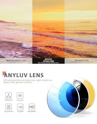 Origin: ImportedBrief content visible, double tap to read full content. Full content visible, double tap to read brief content. Bundles with this item Previous page Polarized Sunglasses + Retro Sunglasses for Men -20% $31.99 List: $39.98 Womens Polarized Sunglasses + Mens Sunglasses -17% $32.99 List: $39.98 Anyluv Retro Womens Polarized Sunglasses Combo Pack -35% $33.99 Next page See all bundlesUnique Style Design: Our womens sunglasses frame brings together the retro style and today's latest features. The metal temples with end tips make sure the sunglasses womens stay in place, and the round lenses give your outfit a classy touch. The fluid shape of the frame is designed to suit different face shapes. The frames are available in different colors such as solid, transparent, and tortoiseshell patterns to match different styles of outfitsPerfect for Fashion and Practicality: Our women's sunglasses are not only suitable for everyday wear but also for all occasions. Whether you're enjoying a sunny day at the park, on a trip, or simply strolling through the city, the lenses of our women sunglasses polarized offer clear vision and eliminate glare. With different colors of our womens sunglasses trendy, you can pick the perfect match for your daily outfits and different occasionsUV400 Protection Polarized Lenses: ANYLUV womens polarized sunglasses provide highly effective UV400 protection by blocking harmful rays. They reduce glare from the road, eliminate reflected light and reduce scattered light. The high-quality lenses of our round sunglasses for women enhance scene clarity and visual comfort. They also reproduce true colors, effectively reduce eye fatigue and protect your eyesHigh Quality Frames: The frames of our trendy sunglasses for women are made of high-quality materials that are processed to ensure durability and comfort. They are not only lightweight to carry, but also have high elasticity and impact resistance. The metal temples of our women's sunglasses polarized ensure that the sunglasses can withstand the test of time and the elements. The end tips on the temples provide additional comfort, making them suitable for long periods of wearGift Ideas Package and Brand Customer Service: Sunglasses*3, microfiber pouch*3, microfiber glasses cleaning cloth*3, gift box*1. The elegant packaging makes the ANYLUV sunglasses womens polarized the great gift for friends and family. We are committed to ensure the quality of our women's polarized sunglasses. If you have questions about our polarized sunglasses for women, we will promptly address the issue and provide high-quality service to ensure your satisfaction Perfect for everyday use. premium materials and excellent craftsmanship ensure long-lasting durability.