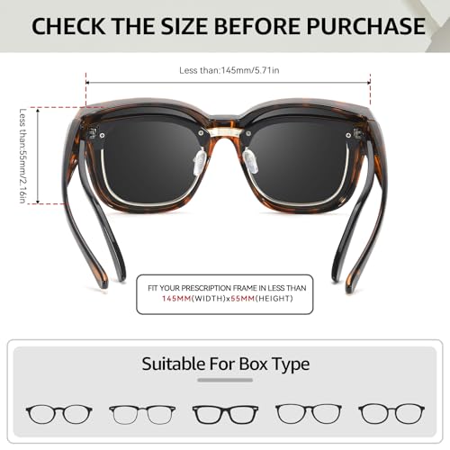 Origin: ImportedSUNGLASSES OVER GLASSES: These sunglasses are specially designed for women who wear glasses. The large frame wrap nicely around your existing prescription glasses, and it is also suitable for wearing normal vision alonePOLARIZED UV400 PROTECTION: Experience enhanced vision with anti-reflective dark-tinted lenses featuring a polarized coating and UV400 protection. Relieves glare from roads, water bodies, and other surfaces, ensuring comfort in bright light conditionsHIGH-QUALITY ULTRA-LIGHT FRAME: The frames of these sunglasses are made of lightweight and flexible material, sturdy and lightweight. You can barely feel them on your face, but they are indestructible and do not put pressure on your noseSUITABLE FOR ANY OCCASIONS: These chic fit-over glasses sunglasses are the perfect choice for outdoor activities such as driving, fishing, beach, traveling, climbing, and scenic walks, and are suitable as a high fashion accessory all year roundGIFT PACKAGE & AFTER-SALES SERVICE: Sunglasses*1, microfiber pouch*1, microfiber glasses cleaning cloth*1, manual*1, glasses box*1. If you have any questions about our products, please don't hesitate to contact us. We will do our best to meet your needs Perfect for everyday use. premium materials and excellent craftsmanship ensure long-lasting durability.
