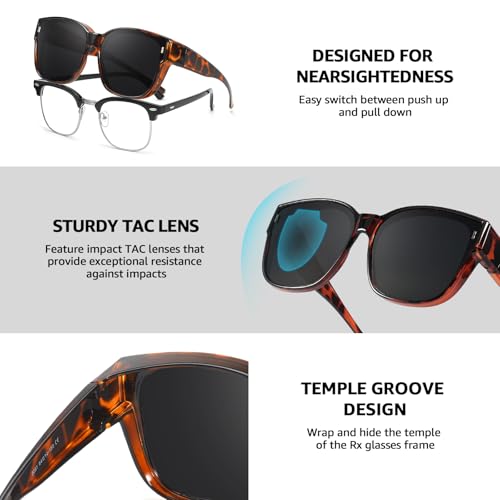 TJUTR Polarized Fit Over Sunglasses for Women, Trendy Oversized Over Prescription Glasses Shades with UV Protection TS3091