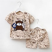 More information about 2 Pieces Toddler Boys T-shirt & Shorts Outfit Cartoon Bear Stripe Short Sleeve Cotton Set Outdoor Fashion Daily Summer Spring 3-7 Years B73 B55 B64