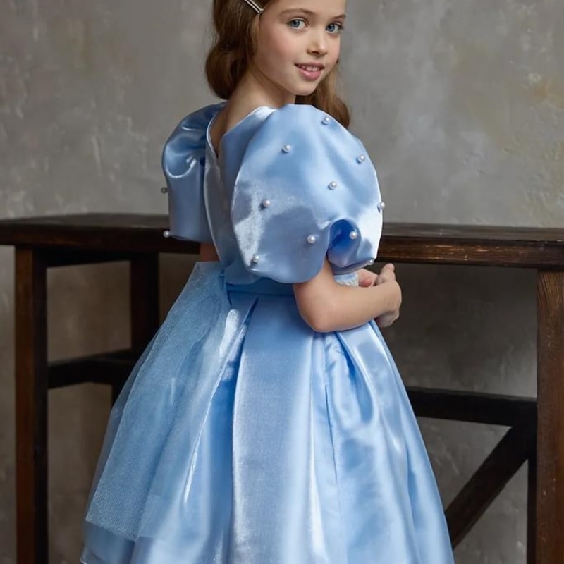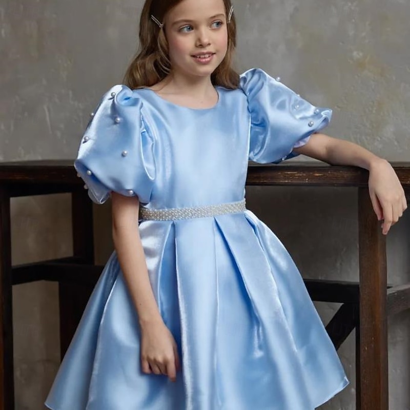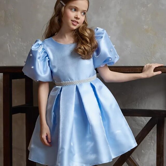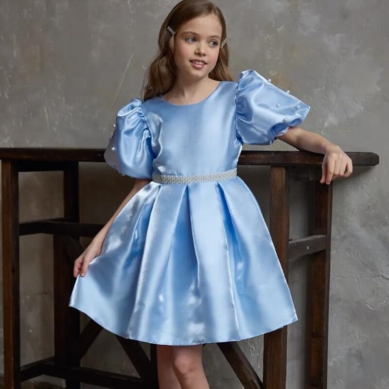 More information about Kids Girls' Dress Party Dress Solid Color Short Sleeve Performance Puff Sleeve Princess Sweet Satin Knee-length Sheath Dress Summer Spring Fall kids Sky Blue