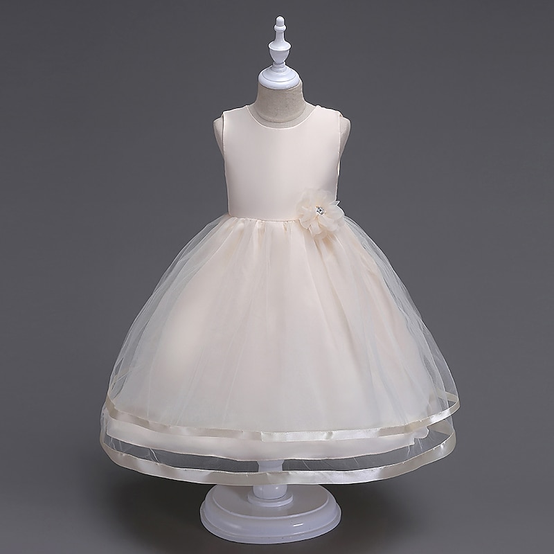 More information about Kids Girls' Dress Party Dress Solid Color Sleeveless Formal Wedding Special Occasion Mesh Fashion Adorable Princess Cotton Maxi Party Dress Swing Dress A Line Dress Summer Spring 3-12 Years White