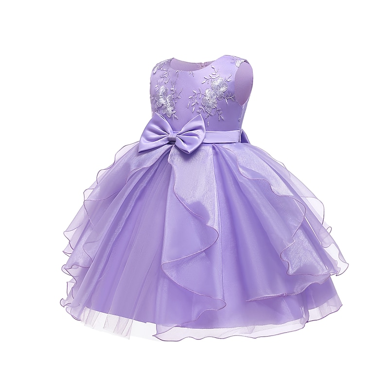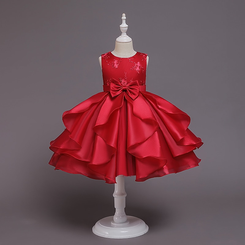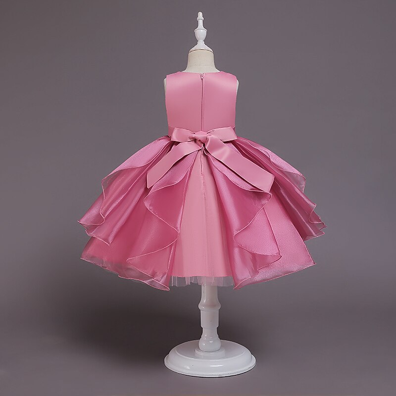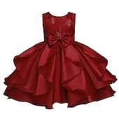 Kids Girls' Dress Jacquard Sleeveless Bow Cute Polyester Above Knee 3-10 Years Light Green Pink Red