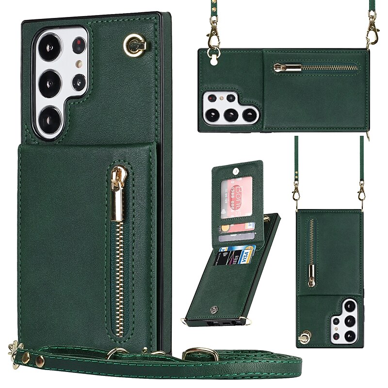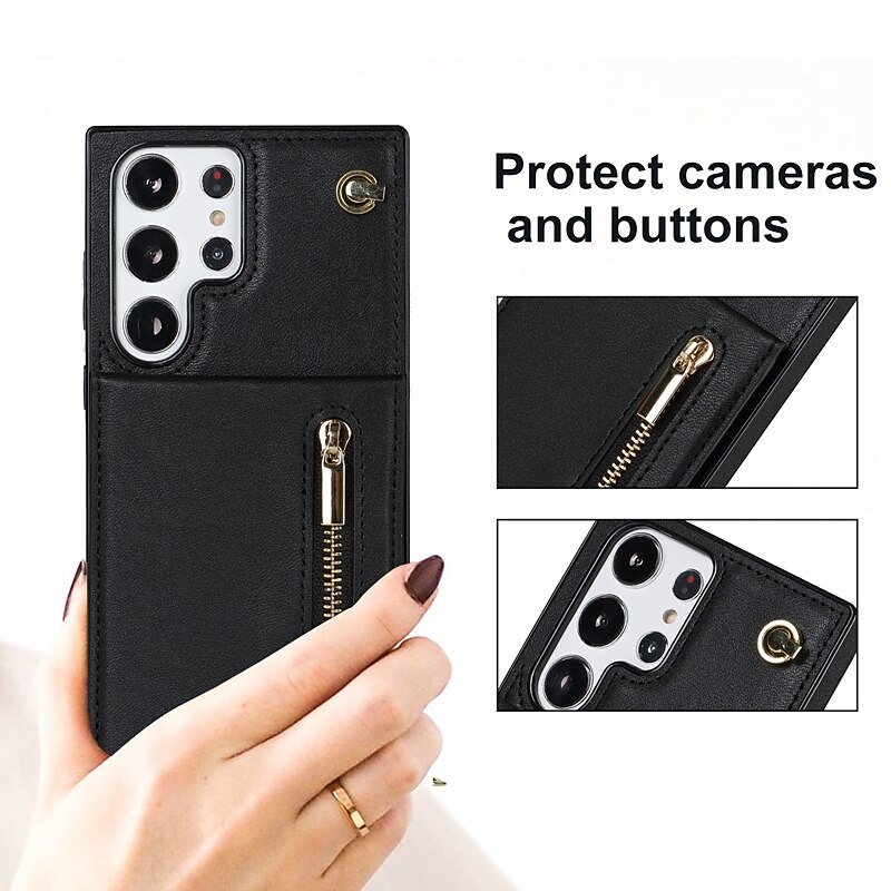 Why Choose Phone Case For Samsung Galaxy S25 S24 S23 S22 S21 FE S21 Ultra Plus Back Cover Wallet Case with Stand Holder Zipper with Lanyard TPU PU Leather?