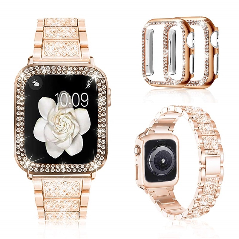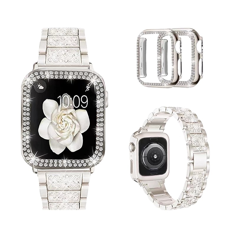 $18.99 - [1+2Pack] Jewelry Bracelet Compatible with Apple Watch band 38mm 40mm 41mm 42mm 44mm 45mm 49mm with Case Bling Diamond Rhinestone Strap Replacement Wristband for iwatch Series Ultra 8 7 6 5 4 3 2 1 SE 2025. Shop for cheap Apple Watch Bands online? Buy at lightinthebox.com on sale today!