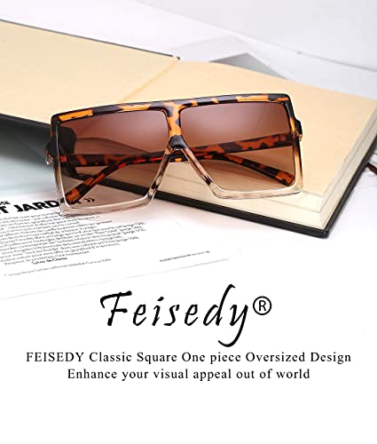 FEISEDY Women Square Oversized Sunglasses Flat Top Fashion Big trendy Large Frame UV400 B2539