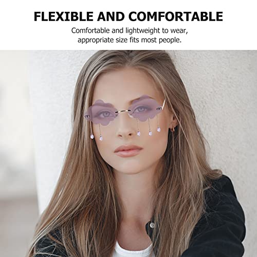 Different Colors: You will receive 3 pairs of Cute Cloud Sunglasses in 3 different colors (purple, pink, blue), enough quantity and different colors to meet your daily use, matching or replacement needs.Premium Materials: Disco sunglasses are mainly made of high-quality PC material, durable and strong, not easy to deform and break. Exquisite craftsmanship and meticulous attention to every detail give it a chic and charming look.Chic Design: Our sunglasses are decorated with cloud shape and raindrop tassels to make your wearing more cool and eye-catching. It is lightweight, you will not feel the burden on your nose and it is comfortable to wear.Wide Range of Uses: Cloud Sunglasses are suitable for Halloween parties, carnivals, cosplay, stage performances, makeup parties, masquerade parties, travel, summer beaches, street shooting, etc.Cloud Shaped Sunglasses: Cute and delicate Cloud with Rain Drop Sunglasses not only protect your eyes from the sun, but can also be paired with a variety of everyday and party outfits to make you look unique and chic. Perfect for everyday use. premium materials and excellent craftsmanship ensure long-lasting durability.