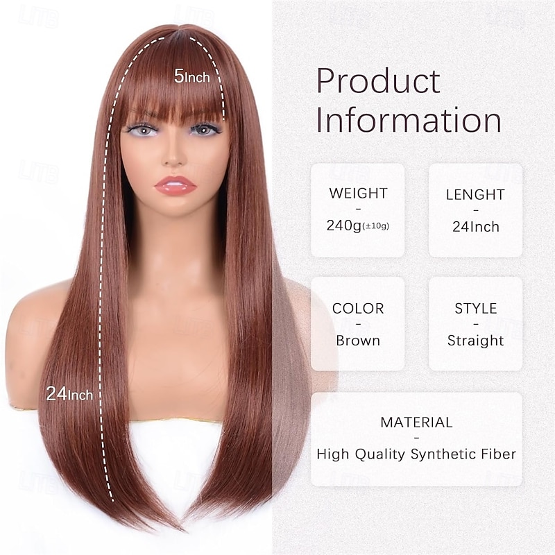 $27.99 - Brown Wig With Bangs For Women Long Straight Brown wig Heat Resistant Synthetic Wig for Girls Daily Use Party Halloween Cosplay Wig 24inch 2025. Shop for cheap Synthetic Trendy Wigs online? Buy at lightinthebox.com on sale today!